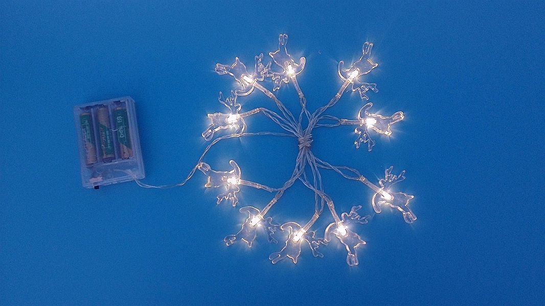 Description: Acrylic reindeer LED light chain, controlled by 3AA battery box